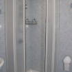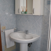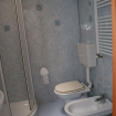 Il bagno ha il lavandino, il bidet, il wc, la doccia, pensili ecc.