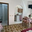 Struttura: dall'ingresso si accede ad un monolocale con lo spazio aperto (chiamato openspace). Nell’openspace c è la camera matrimoniale con il letto matrimoniale ed il letto singolo, 2 comodini, un tavolino con le sedie, gli armadi, poi c è l’angolo cottura che è attrezzato di tutte le stoviglie necessarie per cucinare i vostri pranzi e le cene. L’angolo cottura ha il piano cottura con 2 fuochi, lavandino con 1 vasca d’acciaio inox, lo scolapiatti, c è il frigorifero con il piccolo vano congelatore.