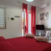 Struttura: dal cortile si accede all'appartamento con la camera matrimoniale con il letto delle dimensioni di una piazza e mezza, il letto alla francese, , comodini armadi ecc, l'angolo cottura, poi il bagno completo con la doccia.