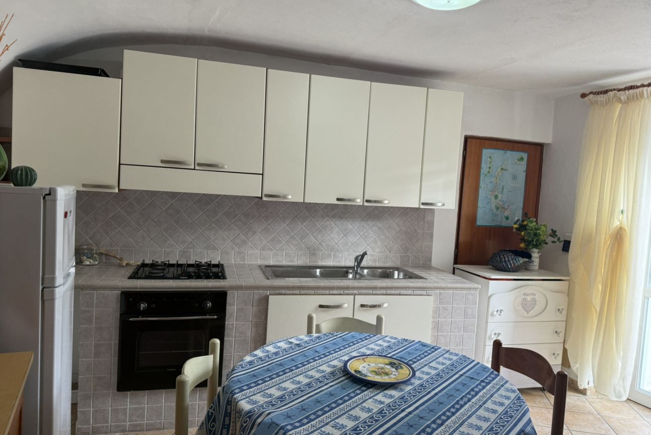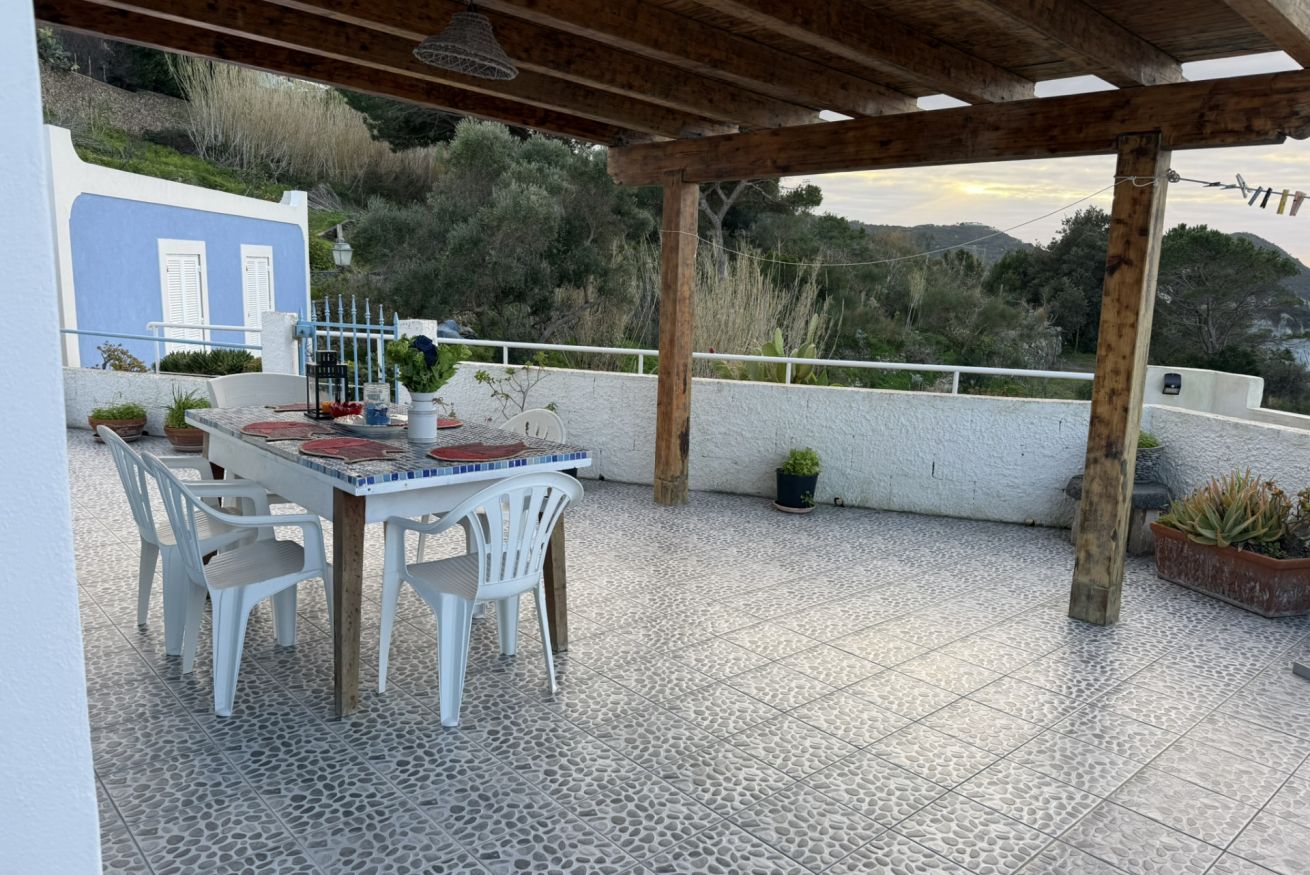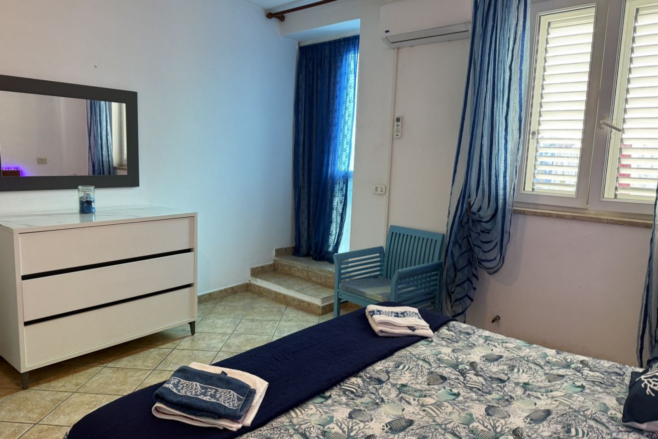 Struttura: dal cortile si accede all'appartamento con la cucina, la camera prima matrimoniale con il letto matrimoniale, la seconda camera da letto con il letto matrimoniale , la cucina completa con un letto singolo, il bagno completo con la doccia, un altro bagno con la doccia, il lavandino, il wc, senza il bidet ed il terrazzo ampio con la vista mare verso la bellissima isola di Palmarola. L’angolo cottura/la cucina ha il piano cottura con 4 fuochi, lavandino con 2 vasche d’acciaio inox, lo scolapiatti, ci sono vari armadi e cassetti, c è il frigorifero con il vano congelatore, il forno.
