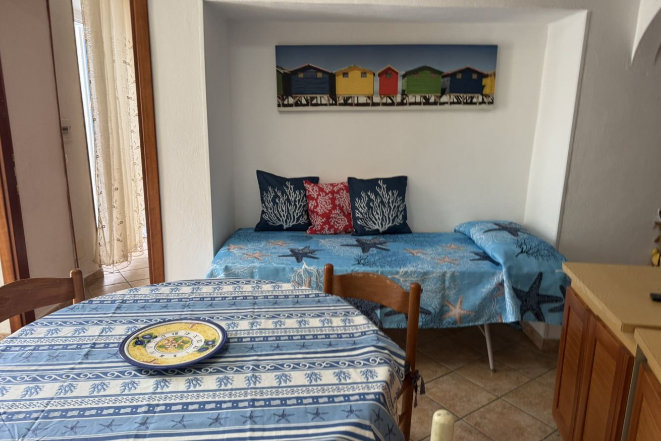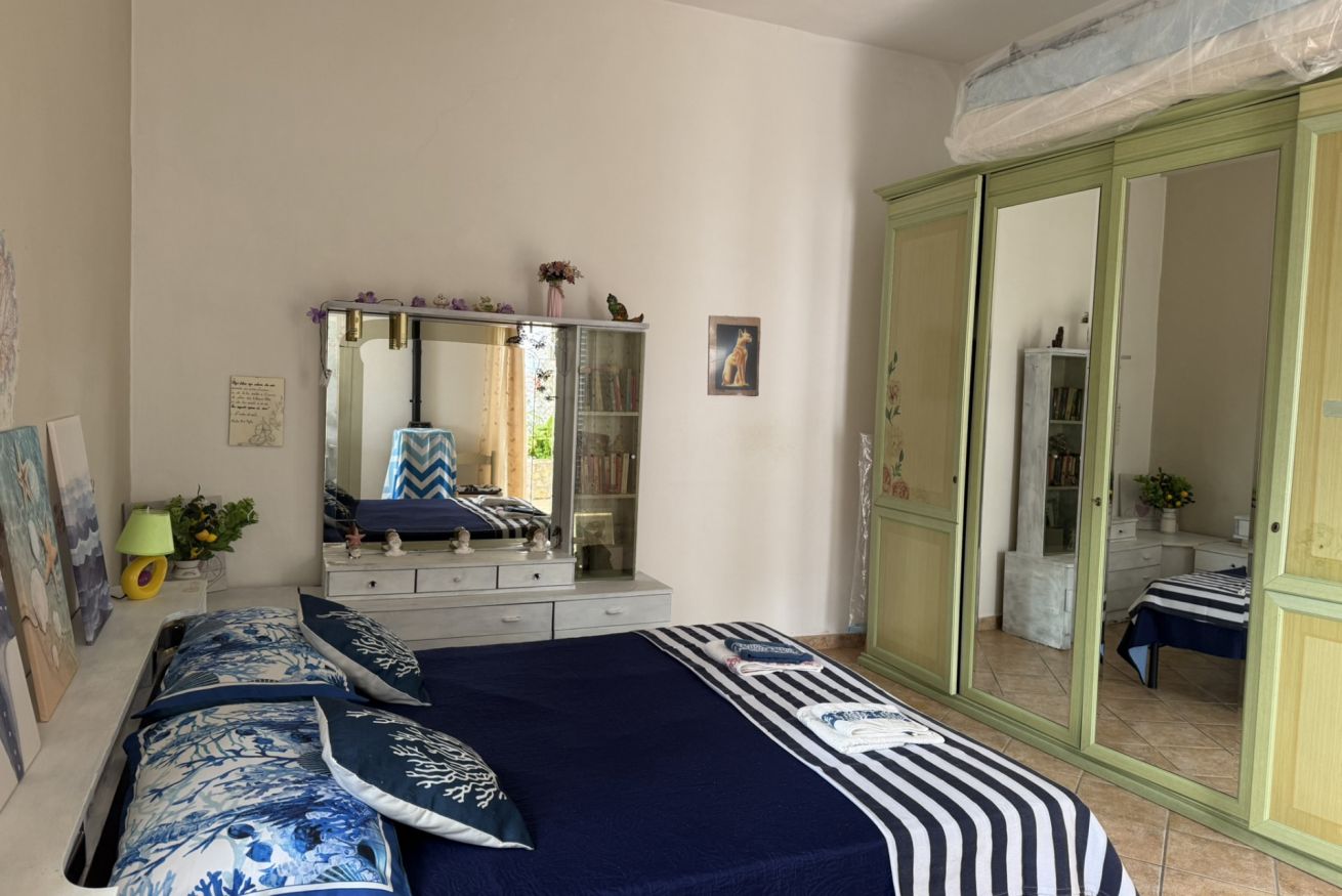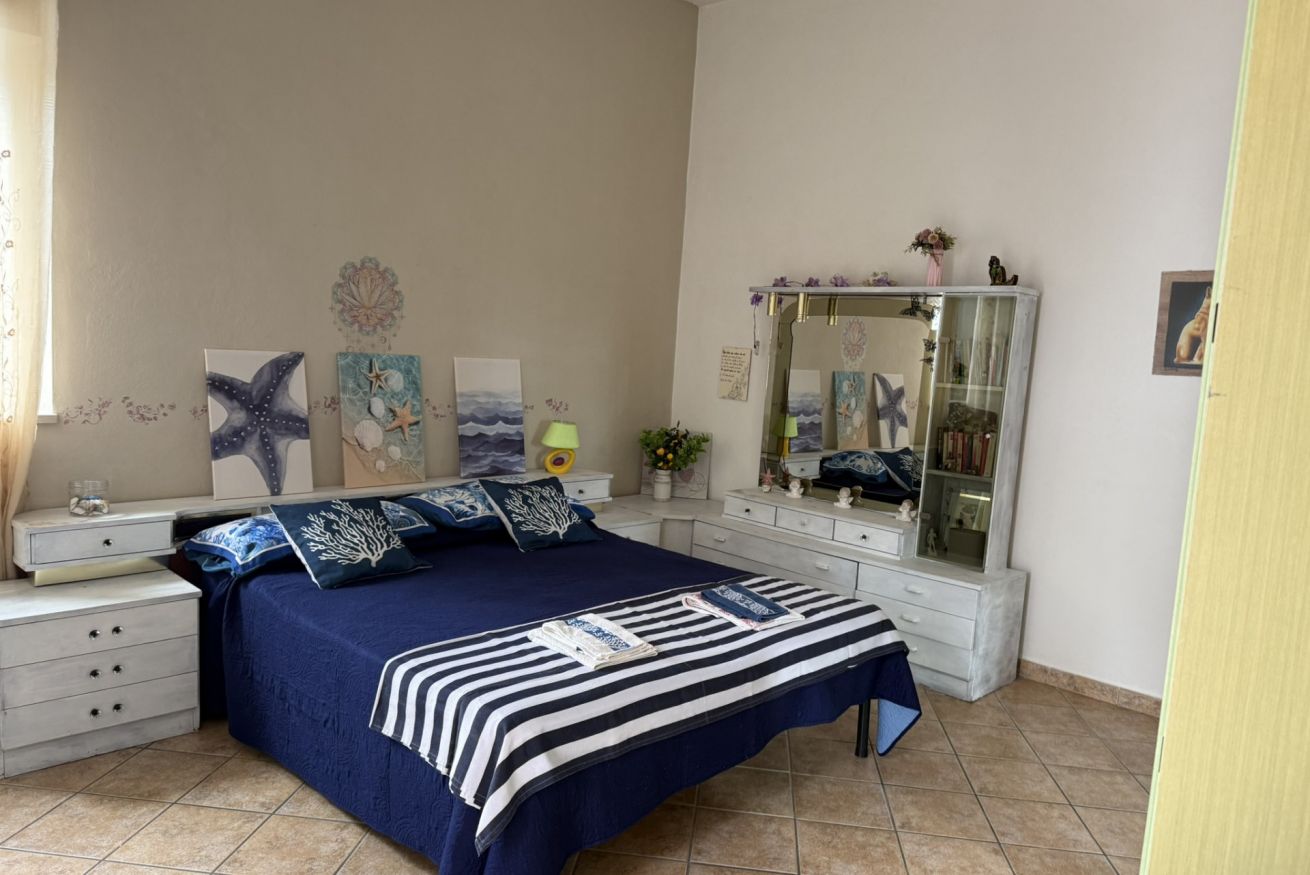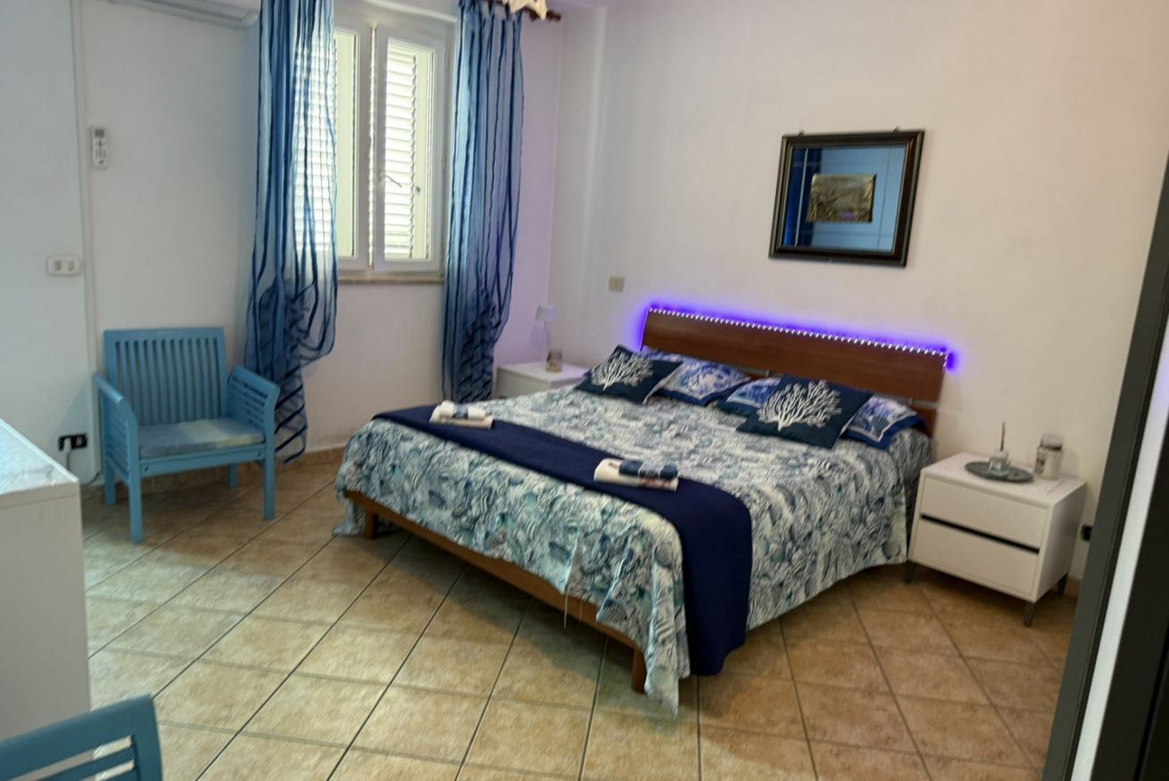 Struttura: dal cortile si accede all'appartamento con la cucina, la camera prima matrimoniale con il letto matrimoniale, la seconda camera da letto con il letto matrimoniale , la cucina completa con un letto singolo, il bagno completo con la doccia, un altro bagno con la doccia, il lavandino, il wc, senza il bidet ed il terrazzo ampio con la vista mare verso la bellissima isola di Palmarola. L’angolo cottura/la cucina ha il piano cottura con 4 fuochi, lavandino con 2 vasche d’acciaio inox, lo scolapiatti, ci sono vari armadi e cassetti, c è il frigorifero con il vano congelatore, il forno.